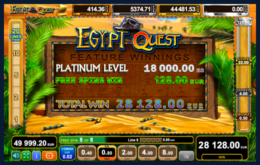 Igrač osvaja Bonus razinu ako su na kraju Egypt Quest besplatnih vrtnji akumulirani iznosi u rasponu jedne od četiri Bonus razine.